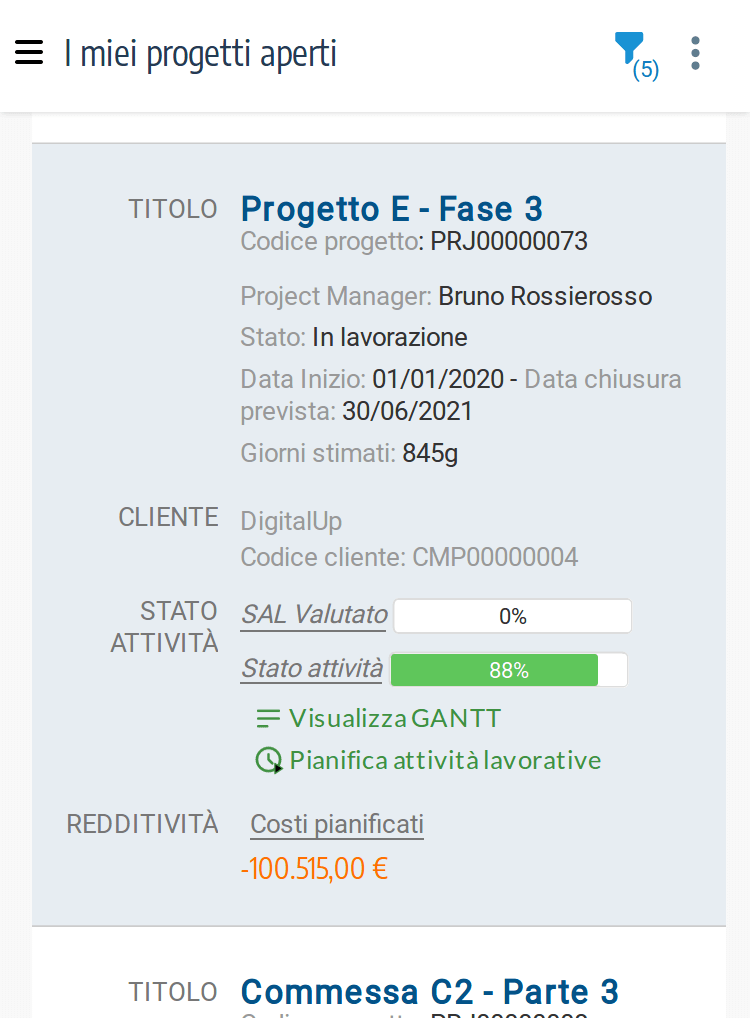 • Customer Manager: oltre alle funzionalità del ruolo Customer Visualizer può modificare ed inserire nuovi contratti clienti, agguingere o rimuovere documenti, impostare filtri avanzati, accedere alla reportistica. Questo profilo può inoltre inserire e modificare le anagrafiche dei clienti.